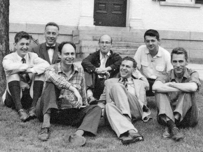 Above: In the Latin Quarter in Paris an immense m1956: First Dartmouth College Conference on Artificial Intelligence. This important event was the starting point of Artificial Intelligence. In the back row from left to right are Oliver Selfridge, Nathaniel Rochester, Marvin Minsky, and John McCarthy. In front on the left is Ray Solomonoff; in the middle is Peter Milner, on the right, Claude Shannon. John McCarthy, a young Assistant Professor of Mathematics at Dartmouth College, decided to organize a group to clarify and develop ideas about thinking machines. McCarthy coined the term Artificial Intelligence for the first time during this event.onument depicts Archangel Michael subduing the Devil-Satan and the snarling dragon at lower right. Michael challenges—“Who dares to be God?”