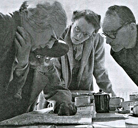 Madame de Salzman, Mr. Gurdjieff and students study a map as they plan one of many driving excursions in the 1940s after the war’s end.