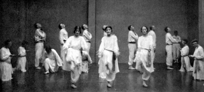 At the Prieuré both de Salzmanns are named among Gurdjieff’s list of “Responsible Members of the Institute”—de Salzmann in the “Capacity of Instructor” and she, “Assistant Instructor.” Archival records show Madame de Salzmann photographed as a principal dancer performing the Sacred Dances in her early years; specific accounts in the extant literature by fellow pupils regarding her role in assisting Sacred Dances during this early period have not been found. Nevertheless, with her music and dance training, her experience in running a dance school in Tiflis, as well as having been named Assistant Instructor for the Institute for the Harmonious Development of Man, Madame de Salzmann is undoubtedly instrumental in preparing pupils for Gurdjieff’s demonstrations of Sacred Dances.