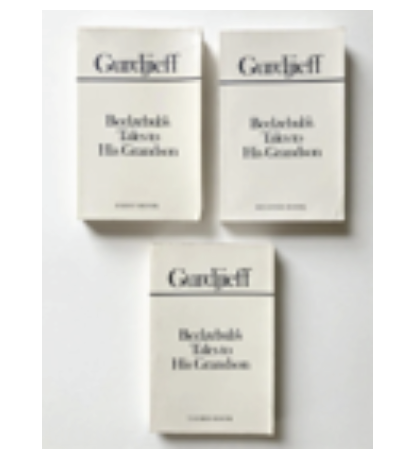 | NOT AUTHORED BY GURDJIEFF SIGNIFICANTLY CHANGED 1992 Original text is significantly changed in sense & meaning, and with deletions resulting in over 100 fewer pages. | ![]() | Beelzebub’s Tales to His Grandson all and everything • 1st series G. I. GURDJIEFF | Viking Arkana New York 1992 Significantly changed from Gurdjieff’s authorized text. [Hardcover] |
